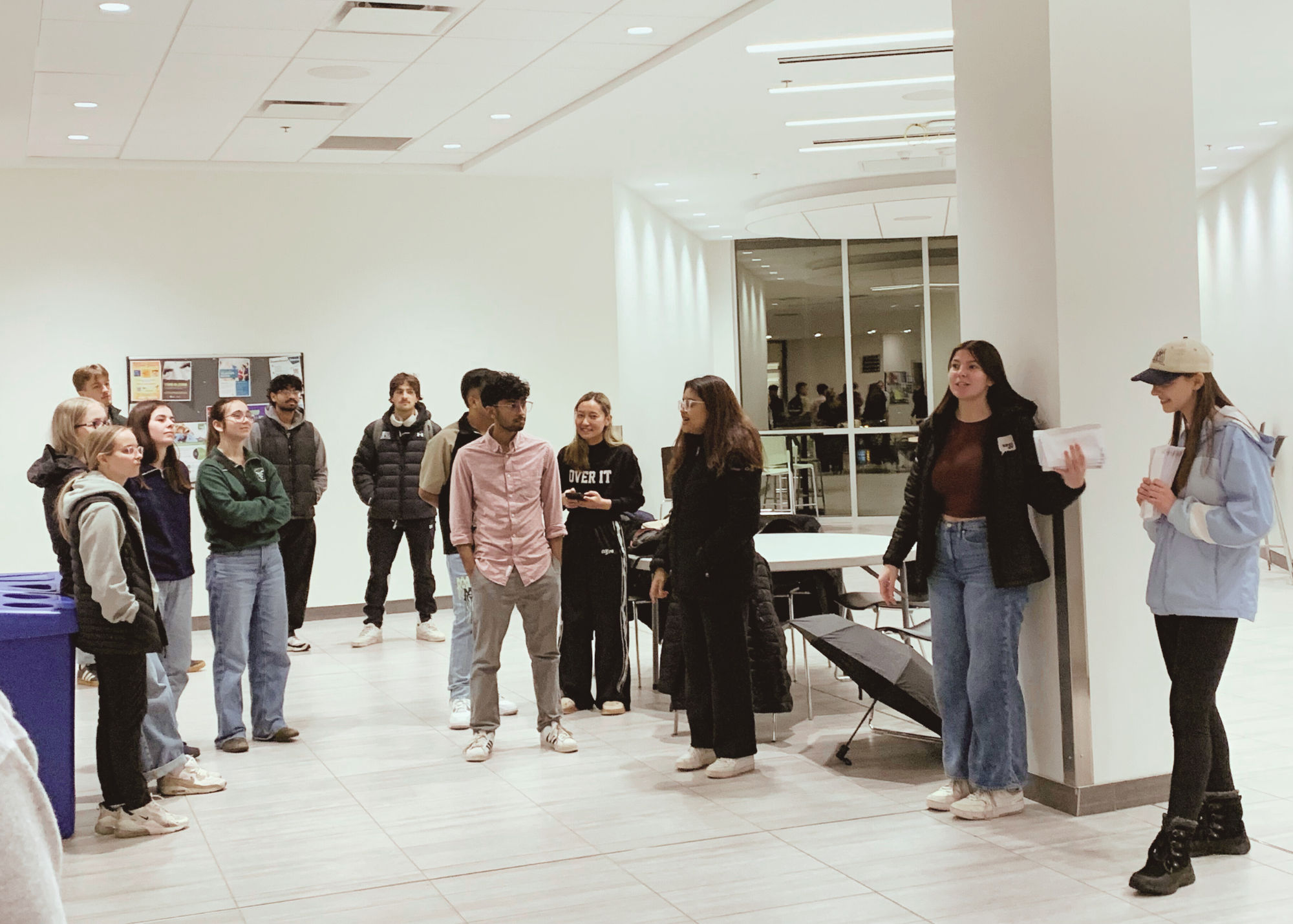 Originally, the relay was supposed to take place outdoors. Teams were meant to run from one campus building to another, solving clues as they went. But the rainy weather had other plans. Instead, everyone rushed through the halls of the Performing Arts Centre. Teams sprinted from the ground floor to the second floor and back over and over, trying to piece together the answers as fast as possible.