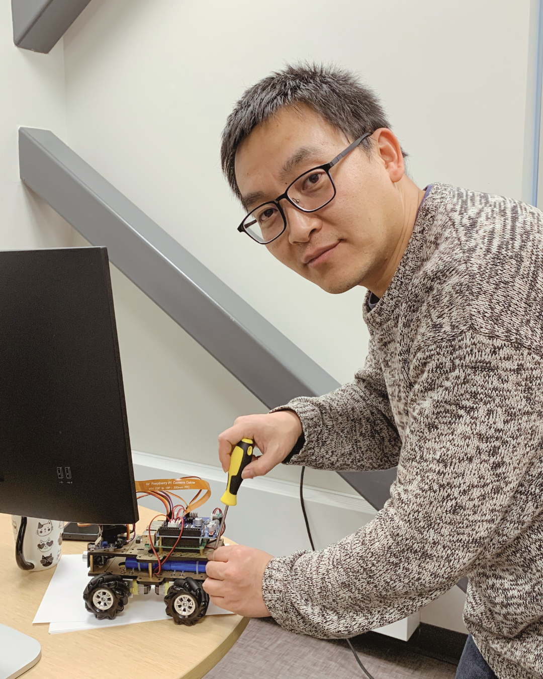 Professor Bing’s academic background is rooted in both industry and research. He completed his PhD studying robotics control systems, with a focus on quadrotor drones, before spending two years working in Ontario on autonomous driving at General Motors. While the industry offered valuable experience, it also pushed him toward a different calling. “During the time I worked in this industry, I realized that in order to provide more profound solutions for open questions, academia may be a better place,” he said. This realization led him back to university teaching, including a position in the United States, before returning to Canada.