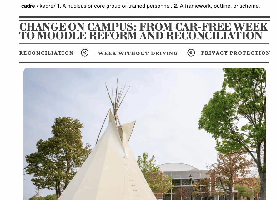 Volume 25 Issue#4: Change on Campus from Car-Free Week to Moodle Reform and Reconciliation